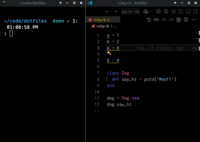 LivingDocument evaluates Ruby code live and inline in your editor while you edit a Ruby file, or a Markdown file that includes Ruby code snippets. This is useful for quickly exploring ideas in Ruby code, since it can be faster and more convenient than working in IRB or running a Ruby script repeatedly as you edit it. It's also great for editing README.md documentation while ensuring the accuracy of example code snippets.